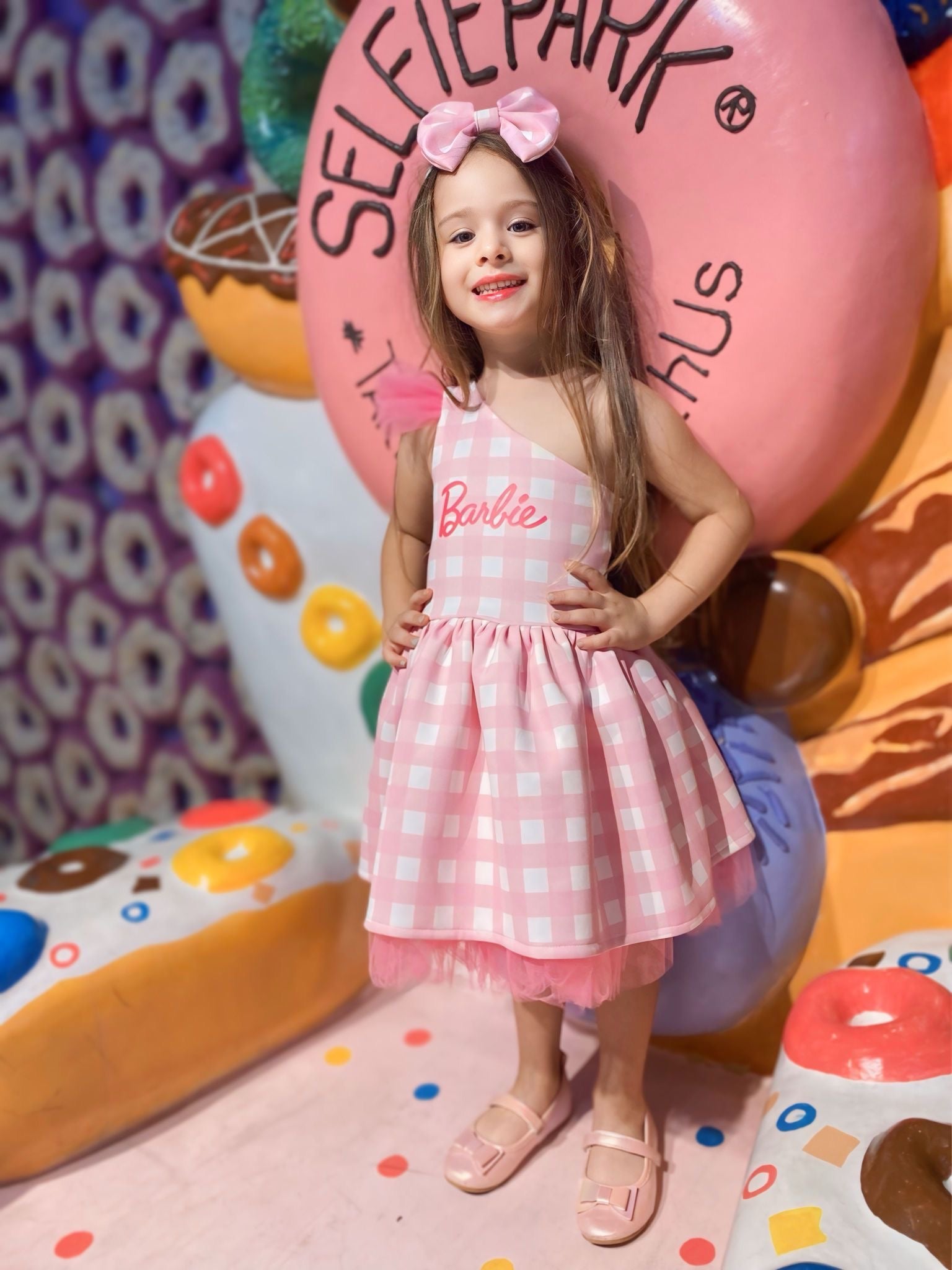 Barbie Ekose tek omuzlu elbise (barbie yazılı)