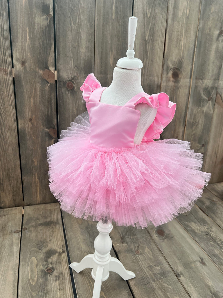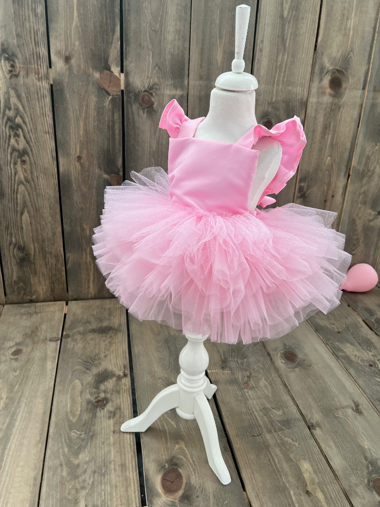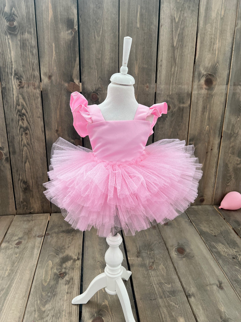 Pembe Simli Tül Detaylı Balerin Tütülü Tulum
