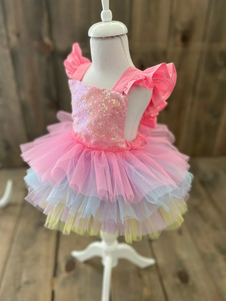 Doğum günleri, fotoğraf çekimleri ve özel parti günleriniz için hazırlanan tütülü romperlarımız büyük bir özenle üretilmektedir. Ön bedeni özel unicorn payet kumaşımızdandır. Omuz askılarında fırfırlar ve ön ve arka kısmında kat kat renkli tülleri bulunur.Bel kısmında ayarlanabilir lastik bulunmaktadır, askıları ise yine boya göre ayarlanabilir şekilde üretilmiştir.