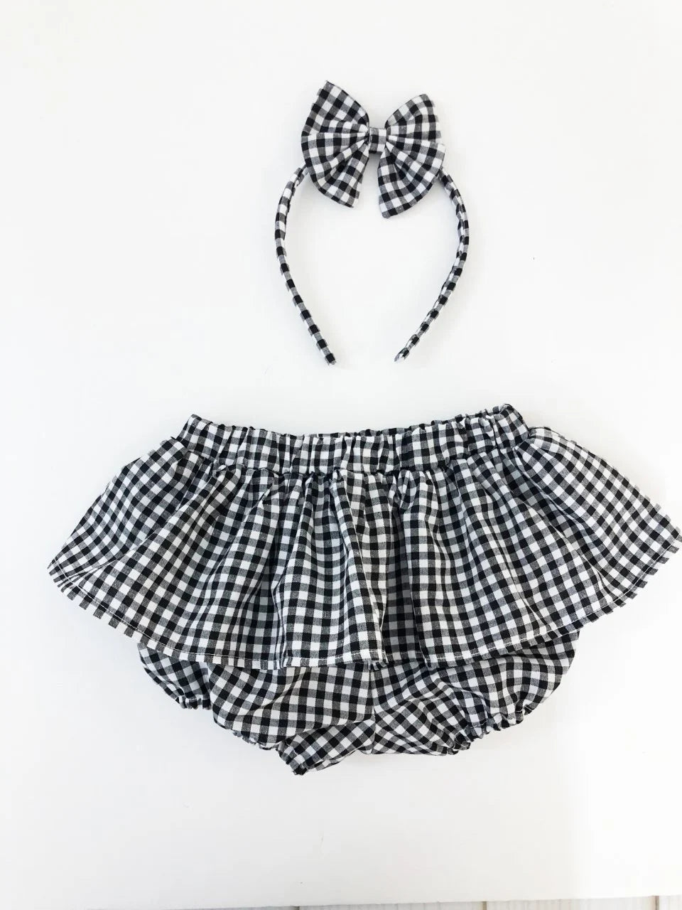 SİYAH BEYAZ EKOSE ETEKLİ ŞORT VE TAÇ SETİ